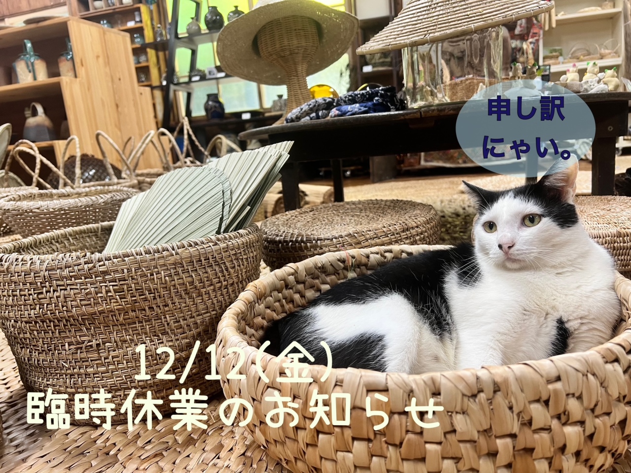 12月12日(金) 沖縄本島への仕入れのため、お店は臨時休業となります。